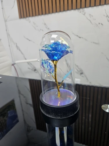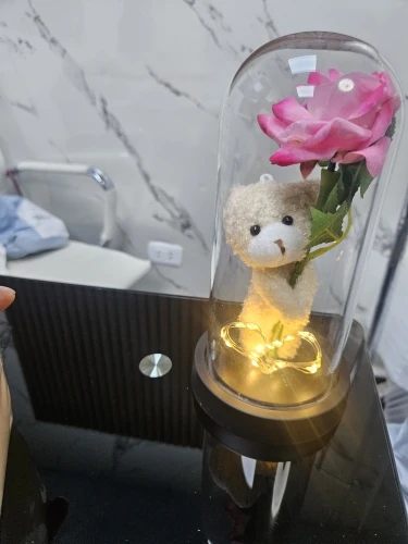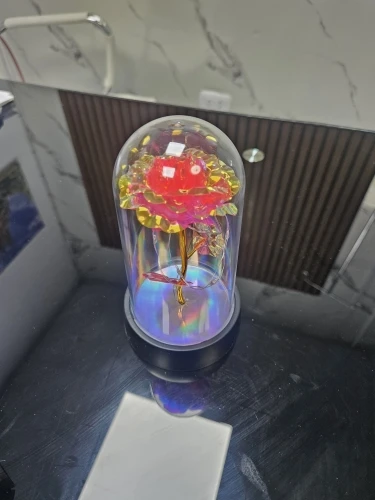 Encased in a delicate glass dome and softly illuminated by warm LED lights, this rose creates a magical and unforgettable gift.